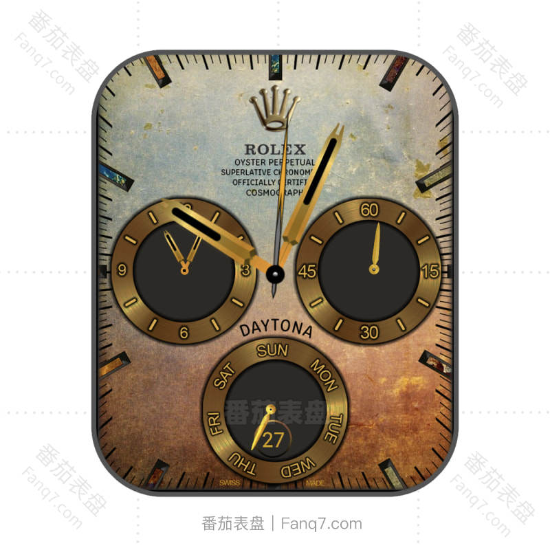 ROLEX蓝橙铁锈金属三盘高级表盘.clock