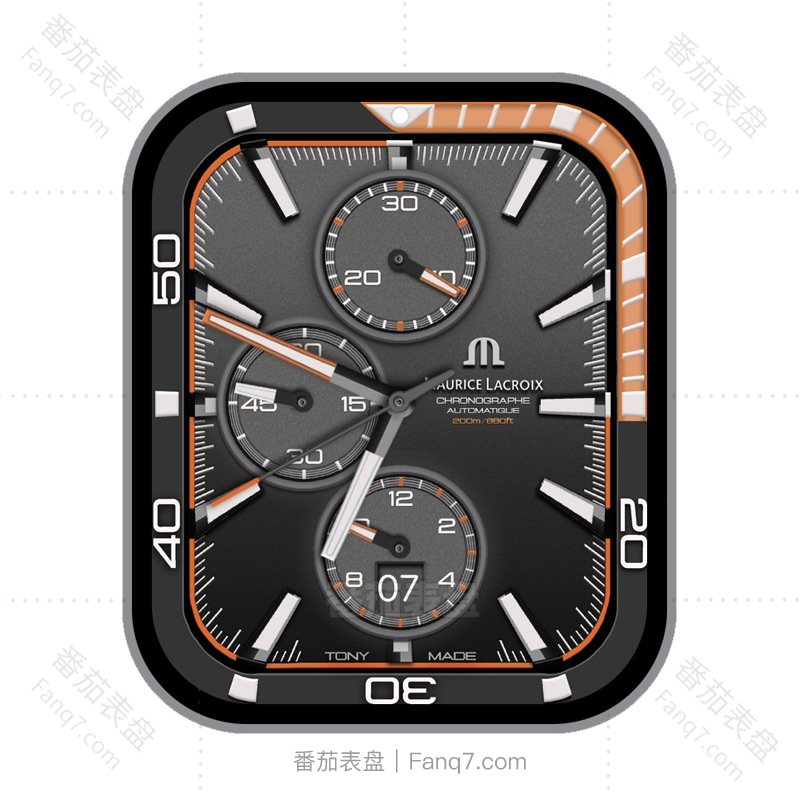 艾美 MAURICE LACROIX 现代风格橙黑机械指针三盘表盘.clock&clcok2