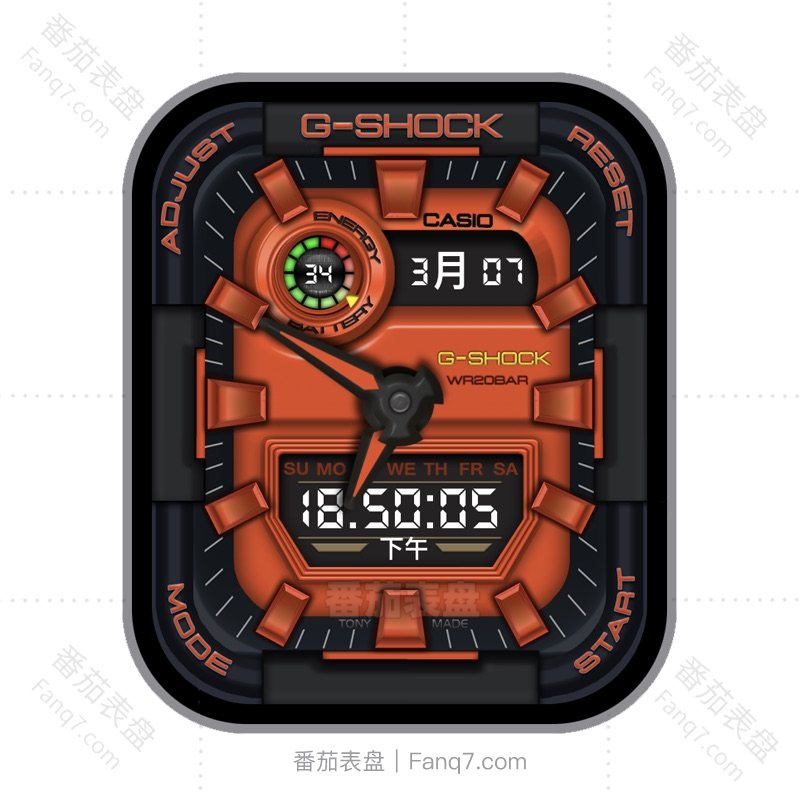 卡西欧 CASIO G-SHOCK橙黑现代运动风指针单盘表盘.clock&clcok2
