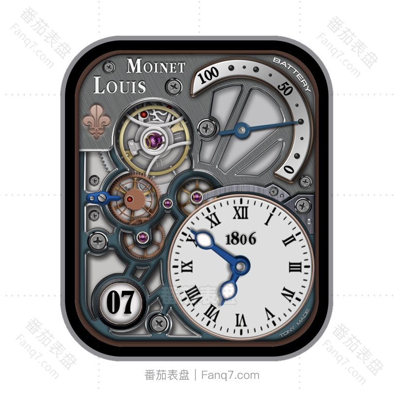 路易莫华奈 LOUIS MOINET 复古亮灰罗马数字指针动态机械单盘表盘.clock&clcok2