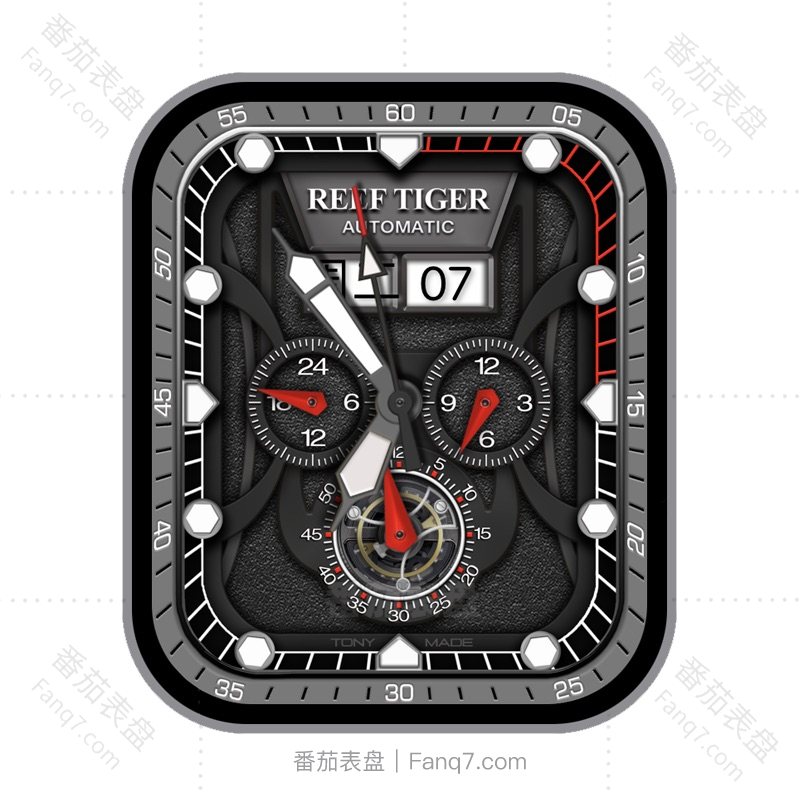 瑞夫泰格 REEF TIGER 复古灰黑动态指针机械三盘表盘.clock&clcok2