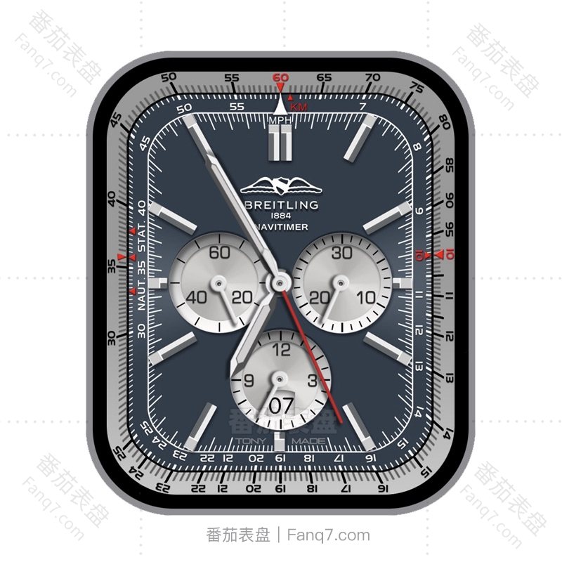 百年灵 BREITLING 复古银蓝刻度指针三盘表盘.clock&clcok2