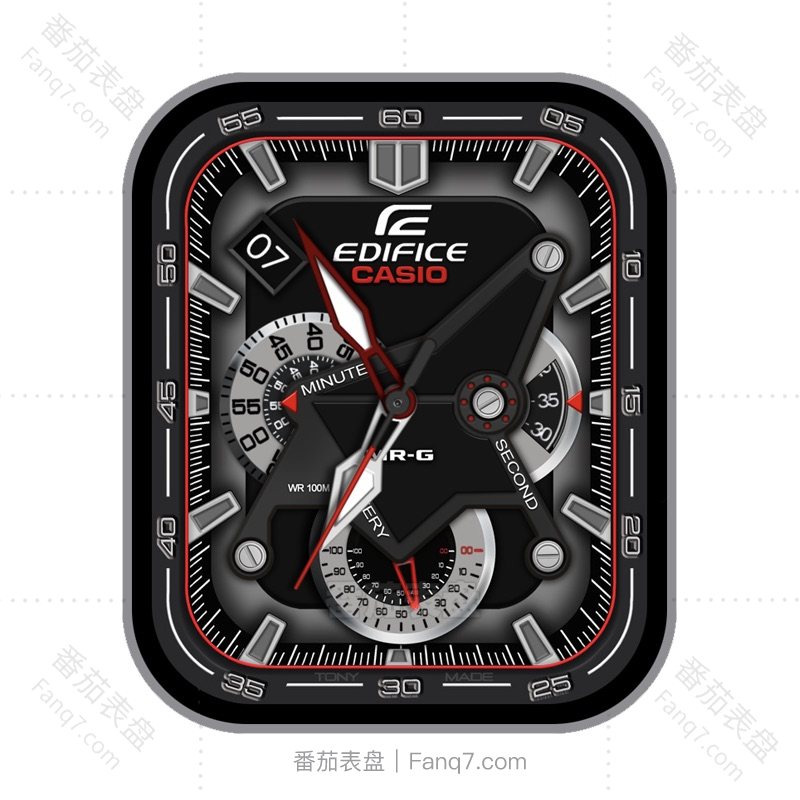 卡西欧 CASIO EDIFICE 复古灰红机械风格指针三盘表盘.clock&clcok2