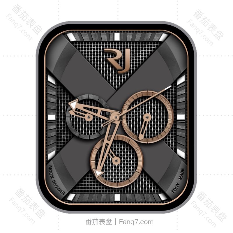 RJ MOON INVADER 灰金复古网格动态指针三盘表盘.clock&clcok2