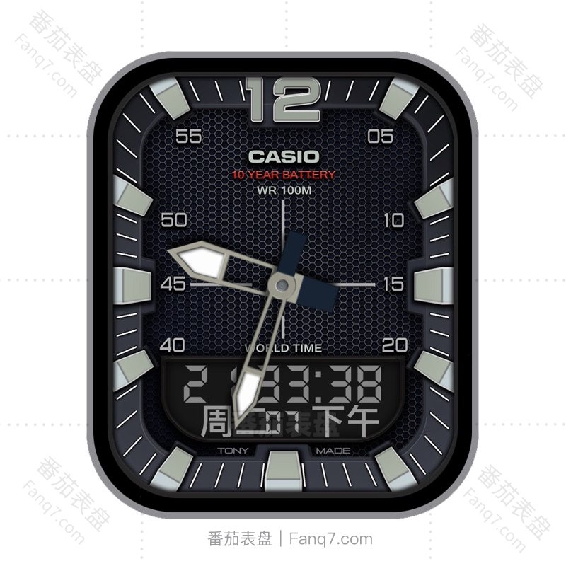 卡西欧 CASIO 复古蓝灰动态机械数字指针表盘.clock&clcok2