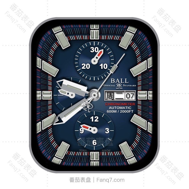 波尔 BALL CHRONOMETER系列蓝色指针动态三盘表盘.clock&clcok2