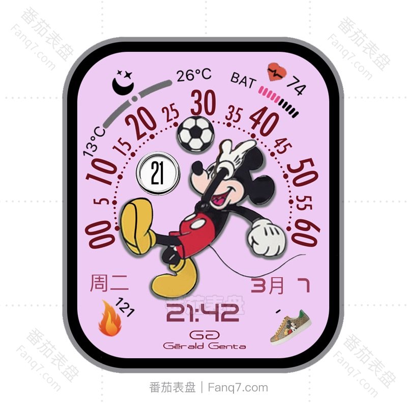 尊达 GERALD GENTA紫色米奇足球联名动态数字指针日志表盘.clock&clcok2