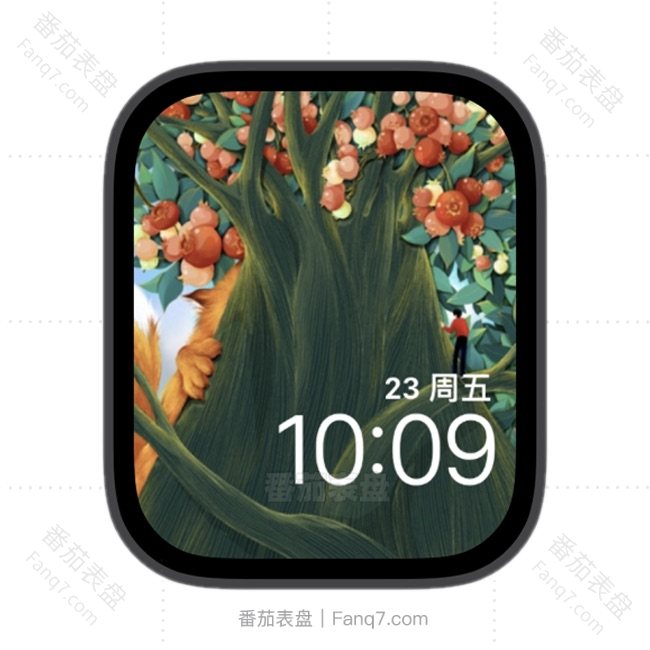 漫画大树狐狸动态数字主题苹果iwatch壁纸表盘.watchface
