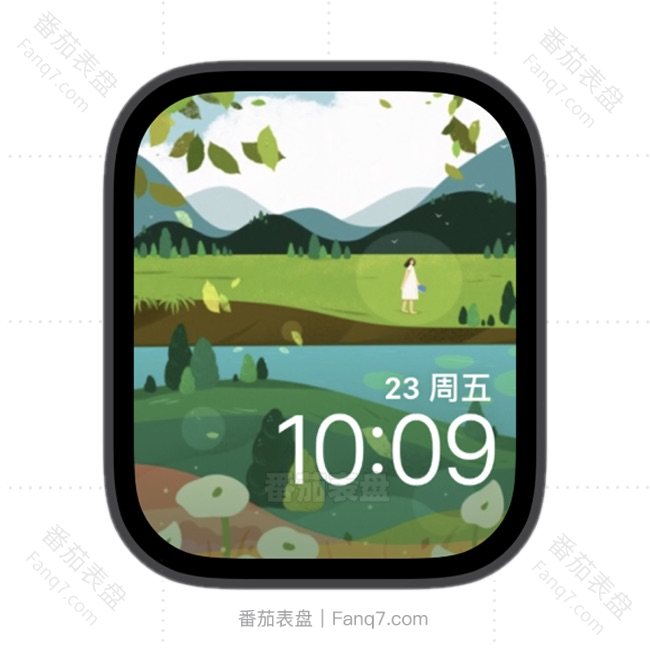 漫画绿色少女河边动态数字主题苹果iwatch壁纸表盘.watchface