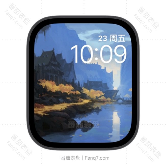 蓝色河边房子动态数字主题苹果iwatch壁纸表盘.watchface