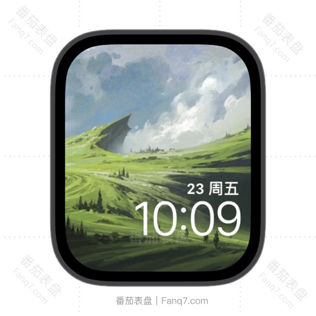 漫画绿色山区动态数字主题苹果iwatch壁纸表盘.watchface