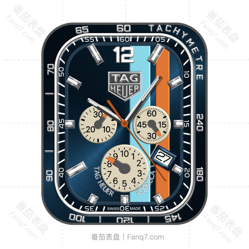 TAG HEUER泰格豪雅深蓝蓝橙三盘高级表盘.clock