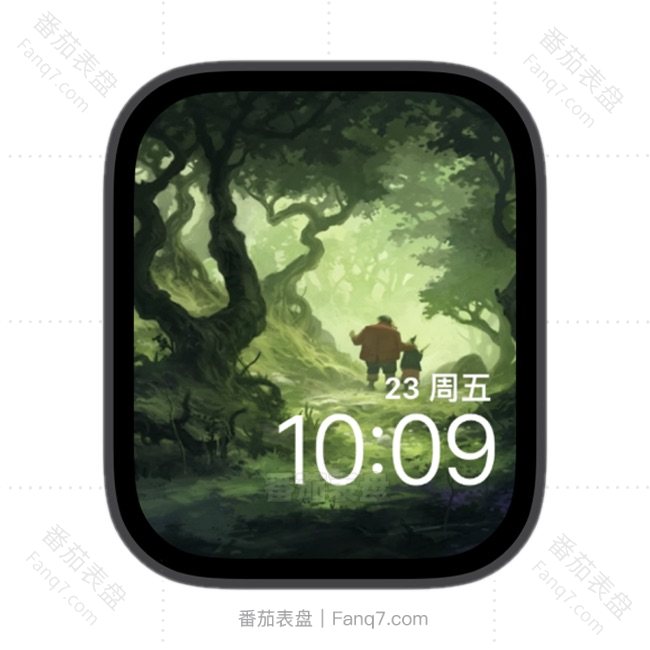 浅绿漫画森林动态数字主题苹果iwatch壁纸表盘.watchface