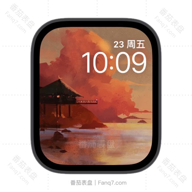 红色山水画动态数字主题苹果iwatch壁纸表盘.watchface