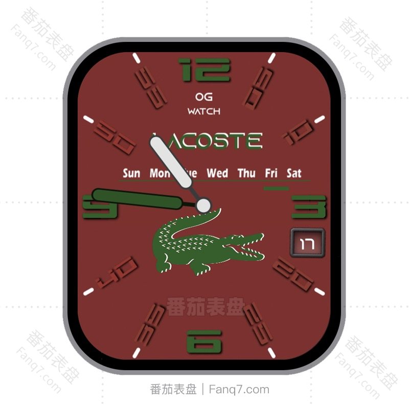 鳄鱼 LACOSTE 暗红绿色鳄鱼日志动态刻度指针表盘.clock&clcok2
