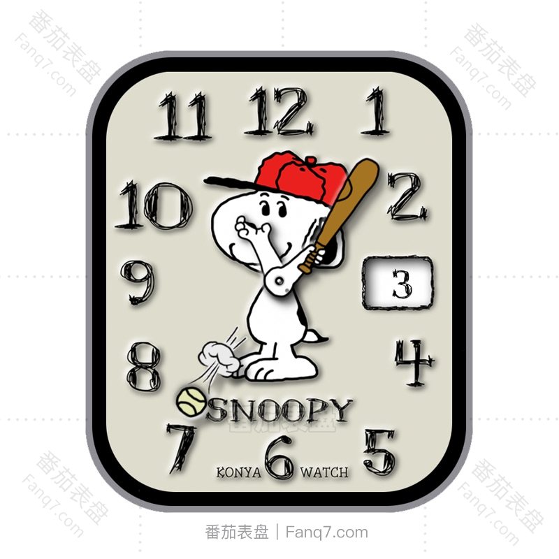 浅色史努比棒球阿拉伯数字动态日志指针表盘.clock&clcok2