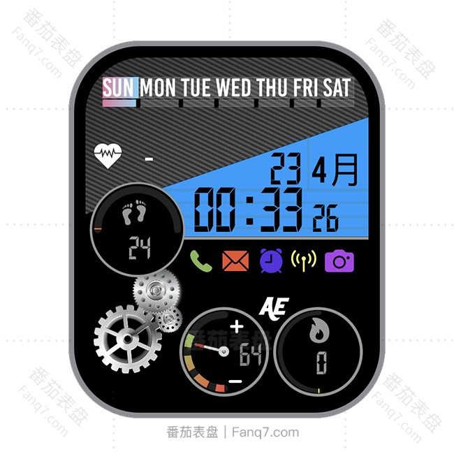 酷黑运动风多功能齿轮动态热量数字表盘.clock&clcok2