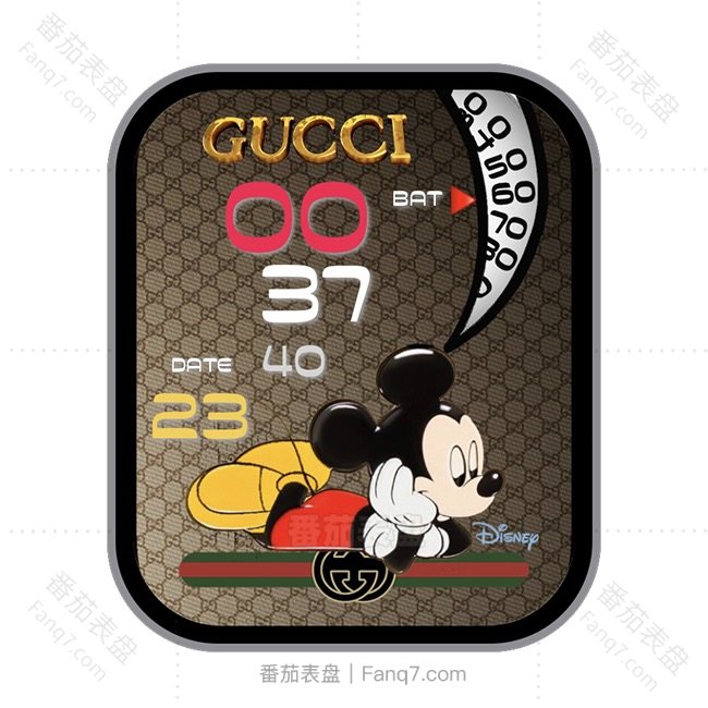 GUCCI 古驰织物纹理米奇打盹动态日志数字表盘.clock&clcok2