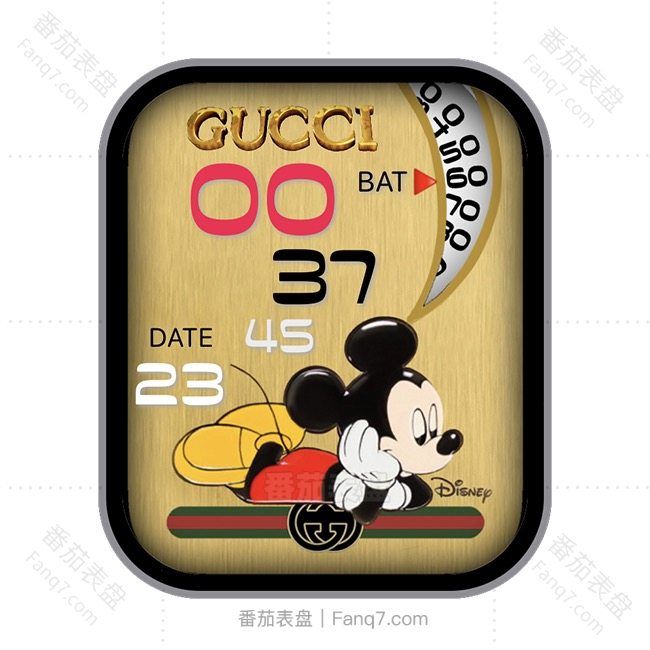 GUCCI 古驰铜色金属纹理米奇打盹动态日志数字表盘.clock&clcok2