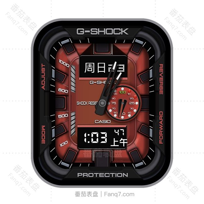 G-SHOCK红黑多功能现代 数字动态刻度指针单盘表盘.clock&clcok2