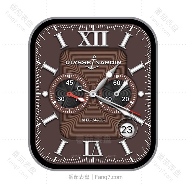 ULYSSE NARDIN雅典棕色复古波纹仪表动态日志刻度罗马数字指针双盘表盘.clock&clcok2