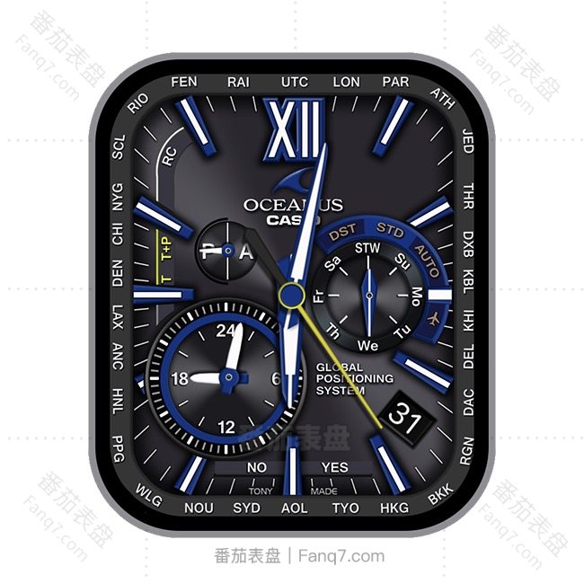 CASIO卡西欧OCEANUS炭黑蓝三盘式日志指针表盘.clock&clcok2