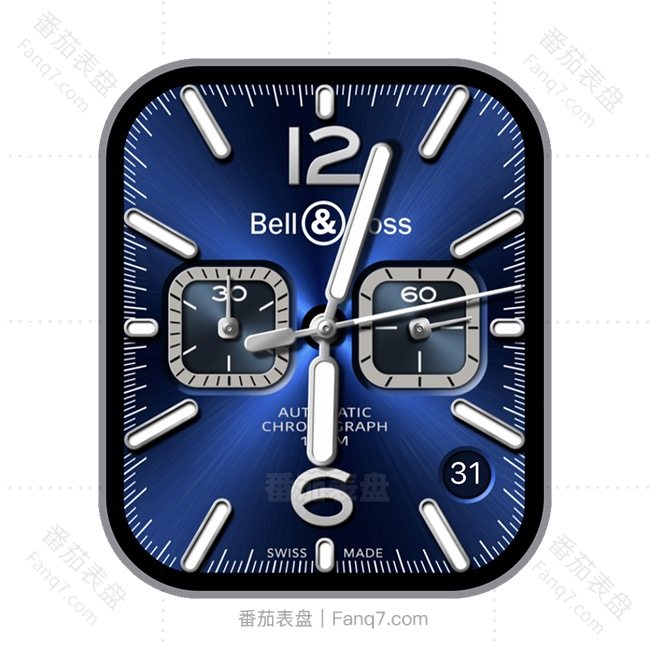 Bell&ROSS柏莱士深蓝色双盘数字日志指针表盘.clock&clcok2