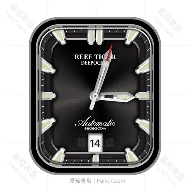 REEF TIGER瑞夫泰格DEEP OCEAN酷黑绿拉丝底日志简约指针表盘.clock&clcok2