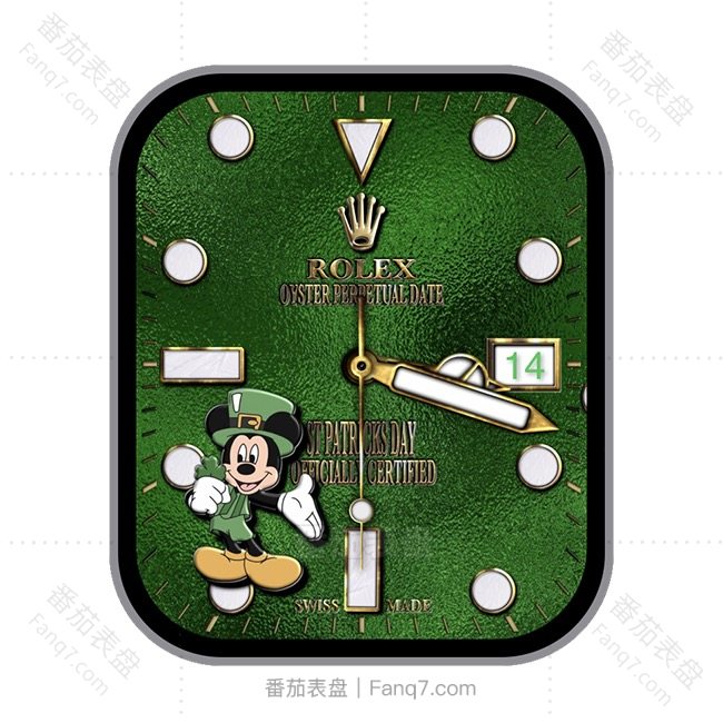 ROLEX劳力士圣帕特里克节绿色底米老鼠简约日志刻度指针表盘.clock&clcok2