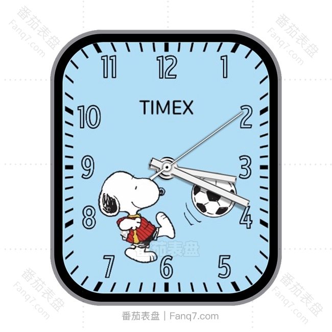 TIMEX天美时湖蓝色史努比踢足球数字刻度指针表盘.clock&clcok2