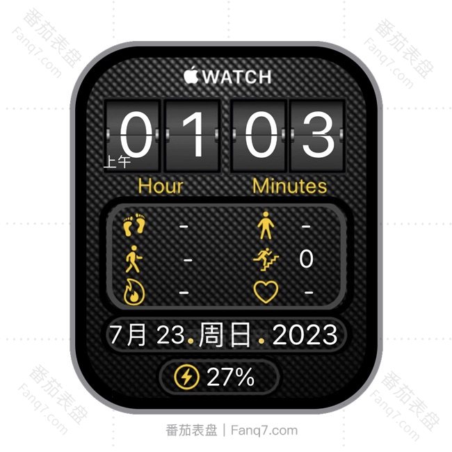 苹果WATCH酷黑色网格底多功能日期时间表盘.clock&clcok2