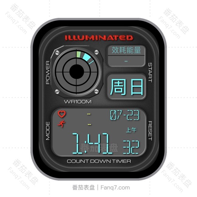 番茄表盘卡路里心率电量炭黑色日期时间UItra专用表盘.clock&clcok2