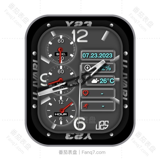 番茄表盘炭黑色三盘式数字日期指针UItra专用表盘.clock&clcok2