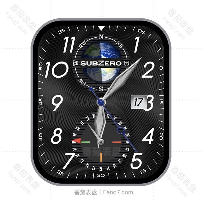 SUBZERO地球炭黑色指纹状双盘式数字日志表盘.clock&clcok2