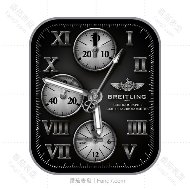 Breitling百年灵炭黑色三盘式罗马数字刻度指针表盘.clock&clcok2