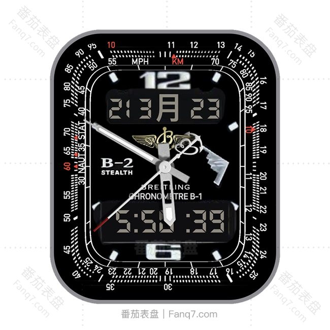 Breitling百年灵B-2轰炸机联名日期时间数字表盘.clock&clcok2