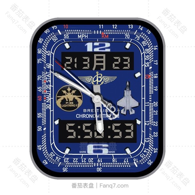 Breitling百年灵F35联名蓝色底日期时间数字表盘.clock&clcok2