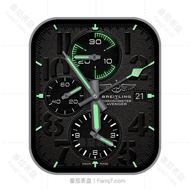 Breitling百年灵炭黑真皮质感荧光绿三盘式数字刻度指针表盘.clock&clcok2