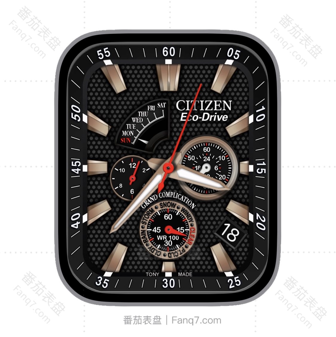 CITIZEN西铁城酷黑金属蜂窝孔三盘式年历表盘.clock&clcok2