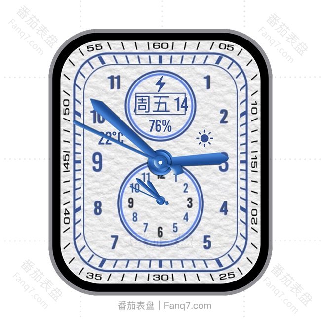 番茄表盘蓝白色双盘式日期数字电量天气多功能表盘.clock&clcok2