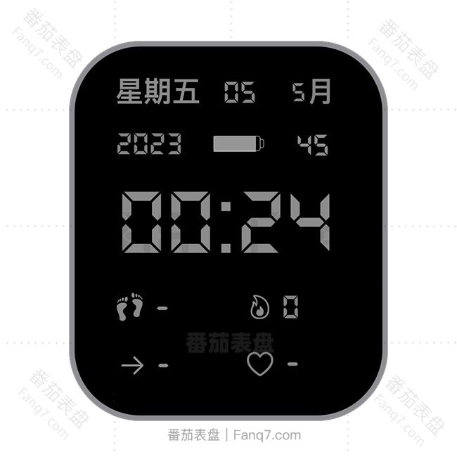 番茄表盘黑色简约多功能步数电量心率日期时间表盘.clock&clcok2