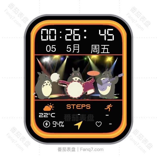 番茄表盘龙猫乐队多功能步数温度电量日期时间表盘.clock&clcok2