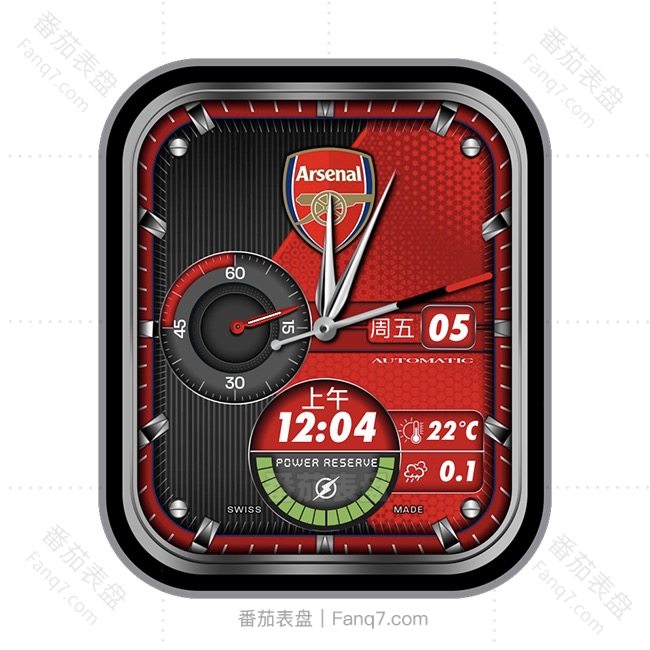 Arsenal阿森纳足球俱乐部红黑色三盘式时间日期指针表盘.clock&clcok2