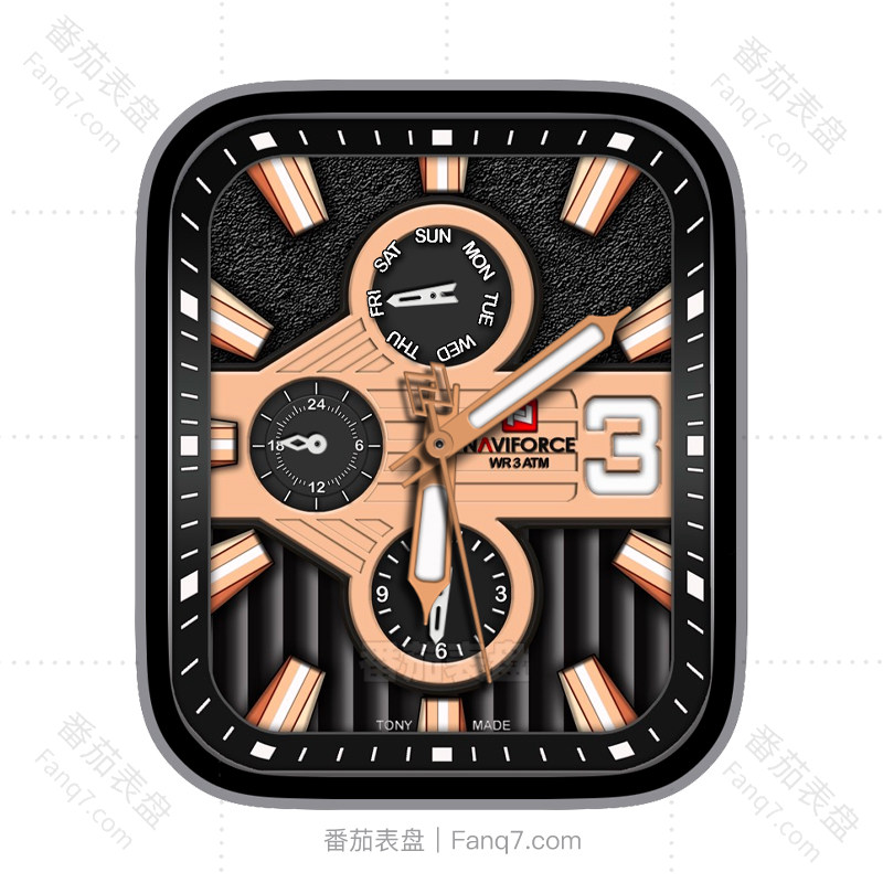 NAVIFORCE领翔黑色磨砂玫瑰金指针刻度日志星期三盘表盘.clock&clcok2
