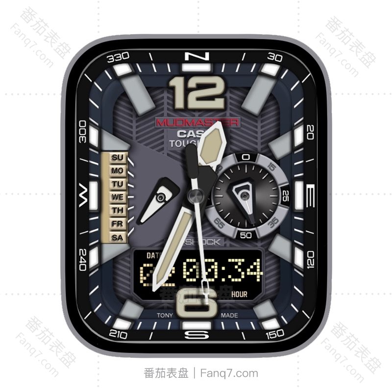 CASIO卡西欧深色多功能电量日志星期刻度指针表盘.clock&clcok2