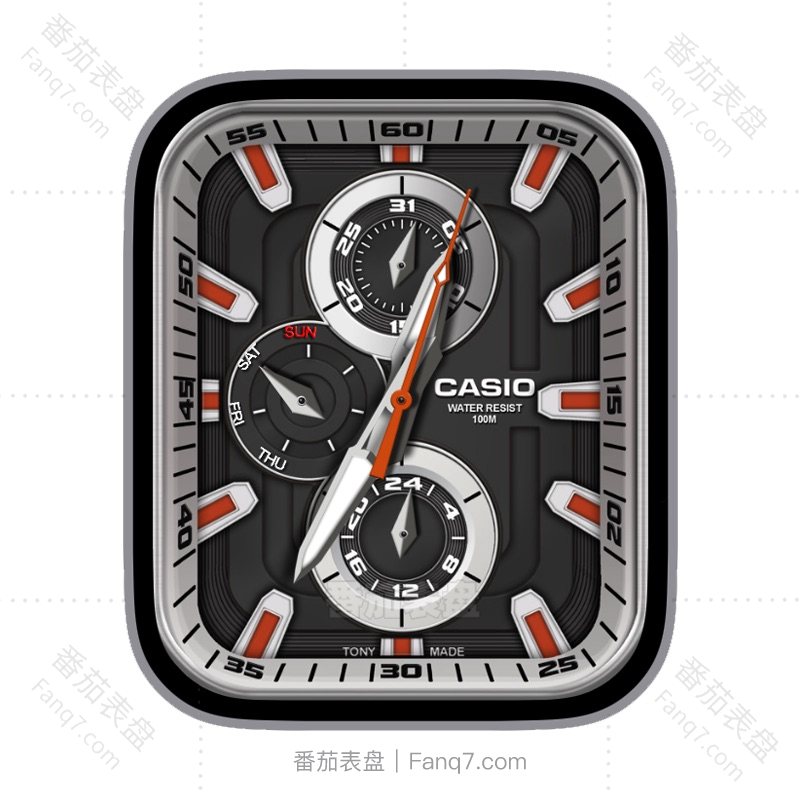 CASIO卡西欧橙灰多功能星期刻度指针表盘.clock&clcok2