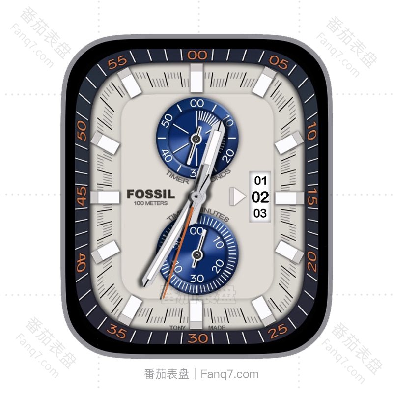 FOSSIL化石多功能蓝色双盘日志刻度指针ultra表盘.clock&clcok2