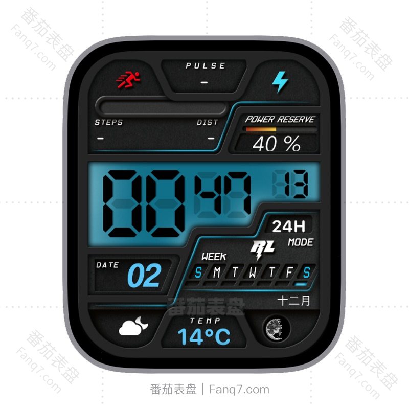RL复古黑色多功能电量步数日志星期数字时间天气温度表盘.clock&clcok2