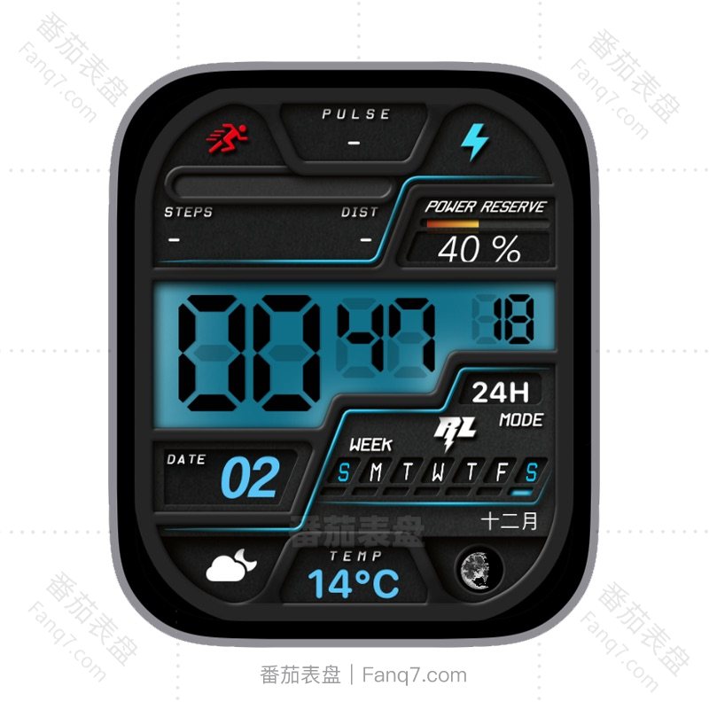 RL复古黑色多功能电量步数日志星期数字时间天气温度ultra表盘.clock&clcok2