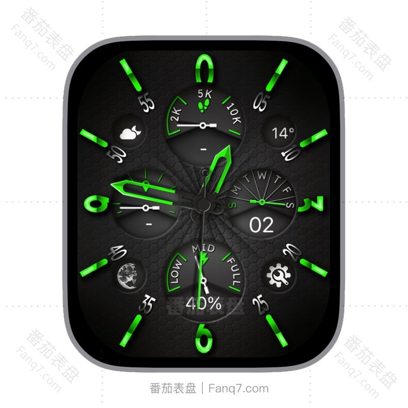 番茄表盘复古荧光绿多功能步数天气温度星期电量刻度指针表盘.clock&clcok2